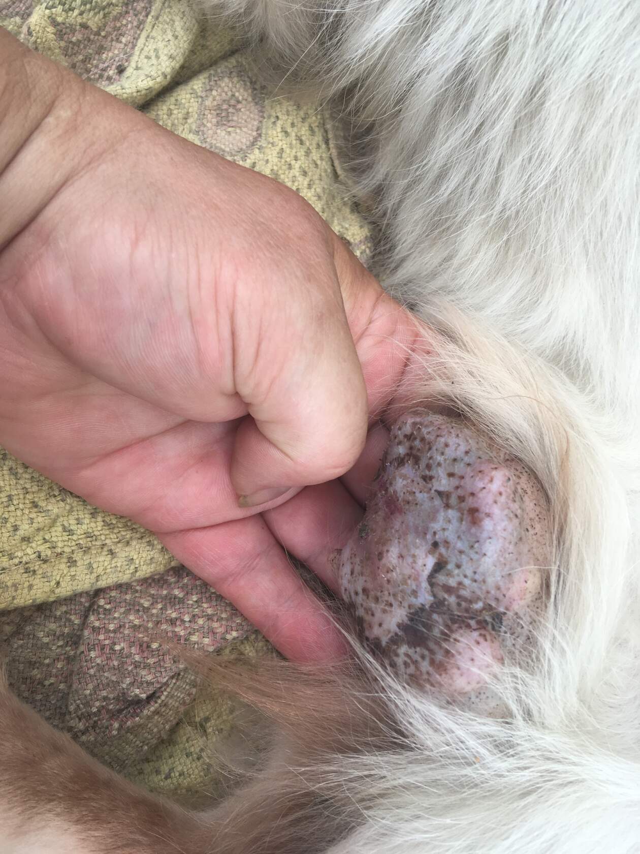 По результатам первичного обследования. Собака возрастная. Неухоженная. Крайняя степень истощения. Колтуны, перхоть. Ротовая полость подлежит санации. Много зубов под удаление, прикорневой кариес. Опухоли молочных желёз. Стабилизируем пару недель и под ножичек) В общем, я хапнула очередной антиквариат. Про бабушек, которым одиноко и они очень хотят маленькую собачку при мне даже не упоминать. Надо рассчитывать свои силы в любом возрасте.
